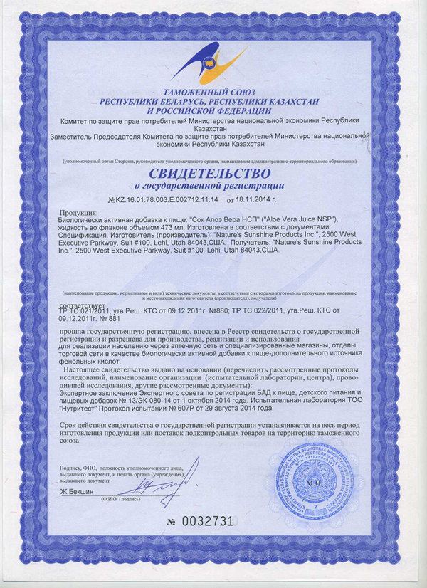БАД к пище Сок Алоэ Вера HCП является дополнительным источником фенольных кислот.