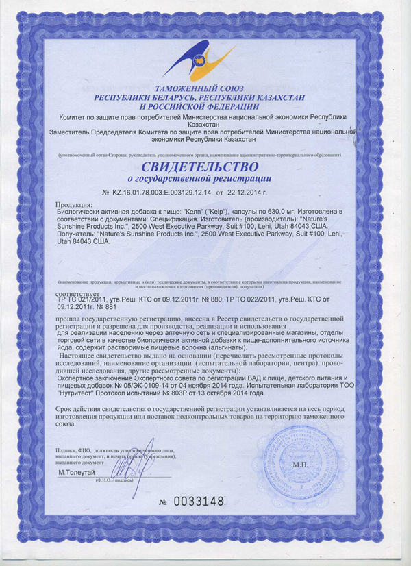БАД к пище Келп является дополнительным источником йода, содержит растворимые пищевые волокна (альгинаты).